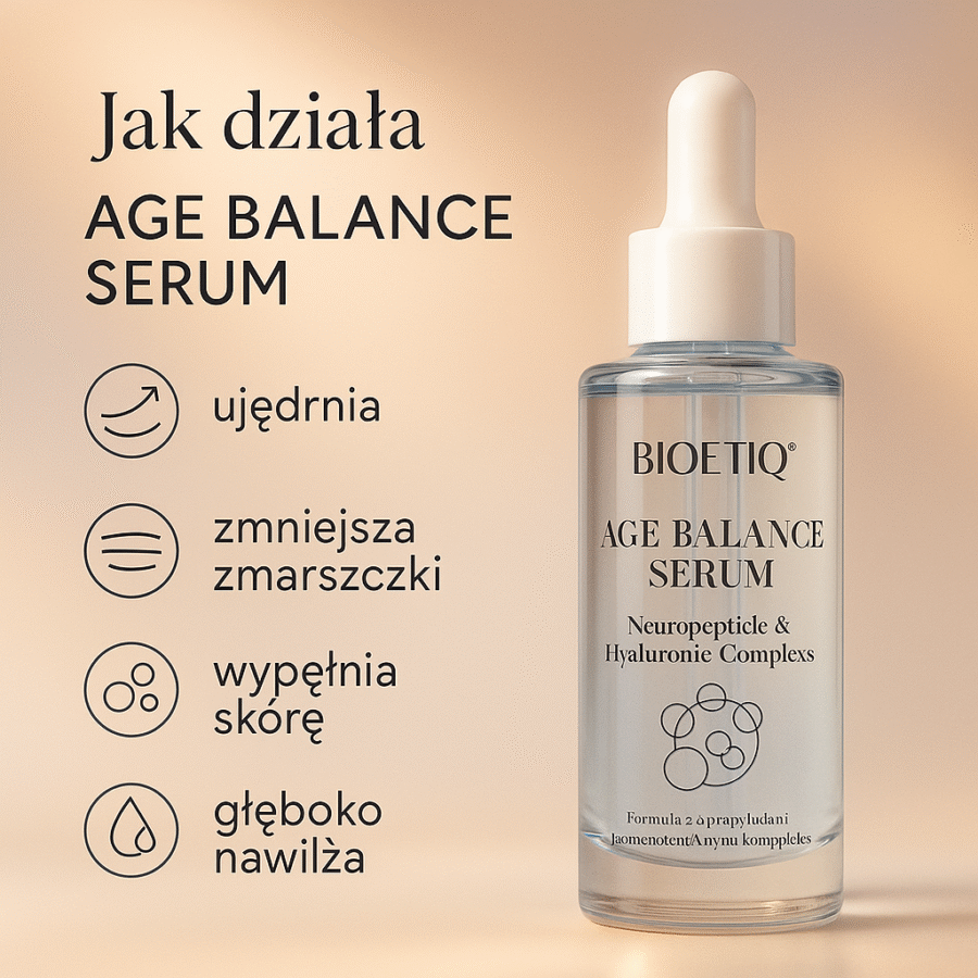 Zamiast klasycznych, powierzchniowych serów przeciwzmarszczkowych, AgeBalance oferuje także serum ujędrniające, które wykorzystuje biomimetyczne peptydy: